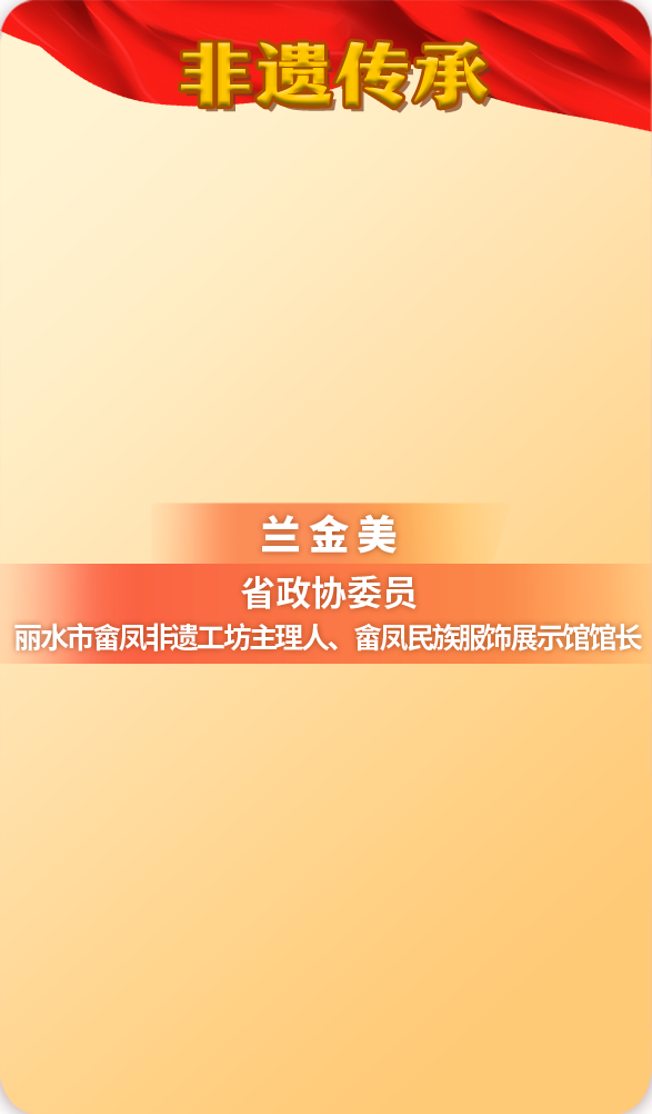丽水是浙江省非遗助力共同富裕试点市。两年前,我在古堰画乡开设了畲凤非遗工坊,不仅是姐妹们聚会交流、手工制作的地方,也是传播民族文化、宣传中华民族共同体的精神家园。我们研发设计的产品,荣获了中国畲族服装设计大赛金奖。我们非遗工坊通过委托绣娘、手工艺制作人在家来料加工的方式,带动农户增收。让乡村妇女群众“天天有活干,月月有钱赚”,实现顾家、传艺、增收“三不误”。